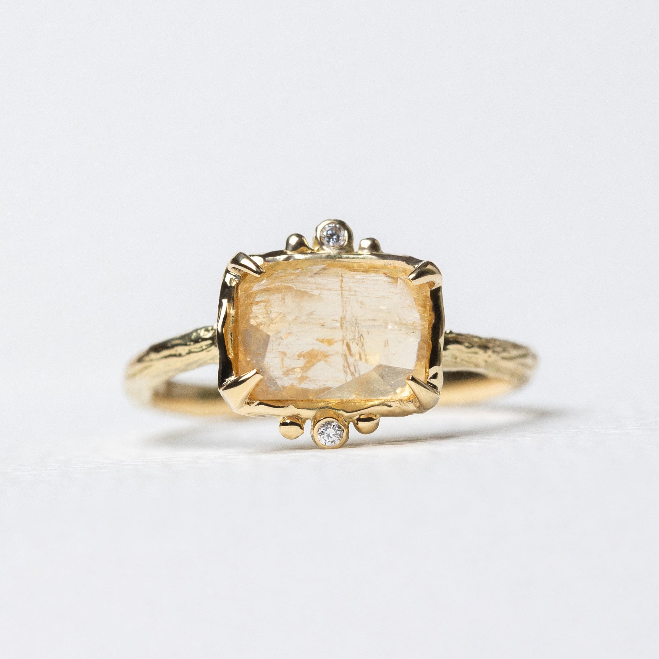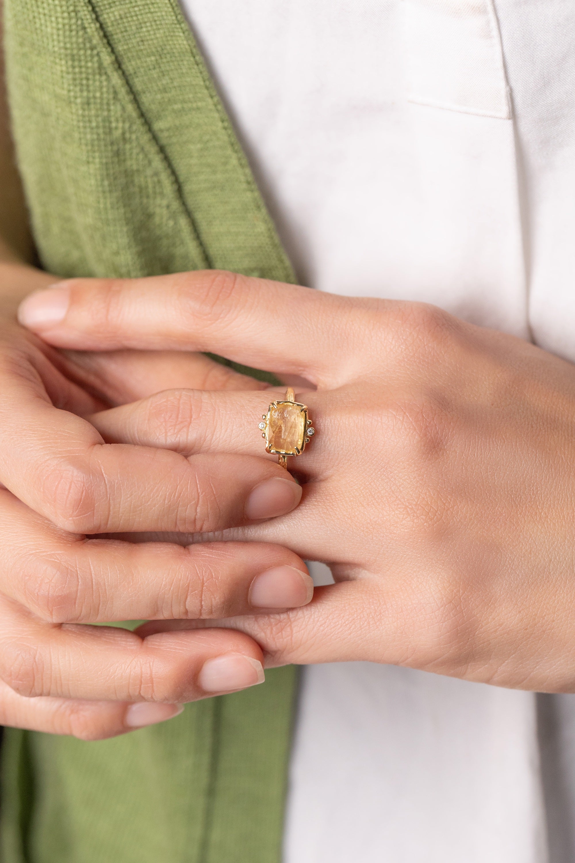 There’s something reassuring about a color that stays true. The imperial topaz in this ring glows with a honeyed golden hue—radiant, mellow, and steady. It holds its warmth whether in sunlight or shadow, against the skin or resting alone.