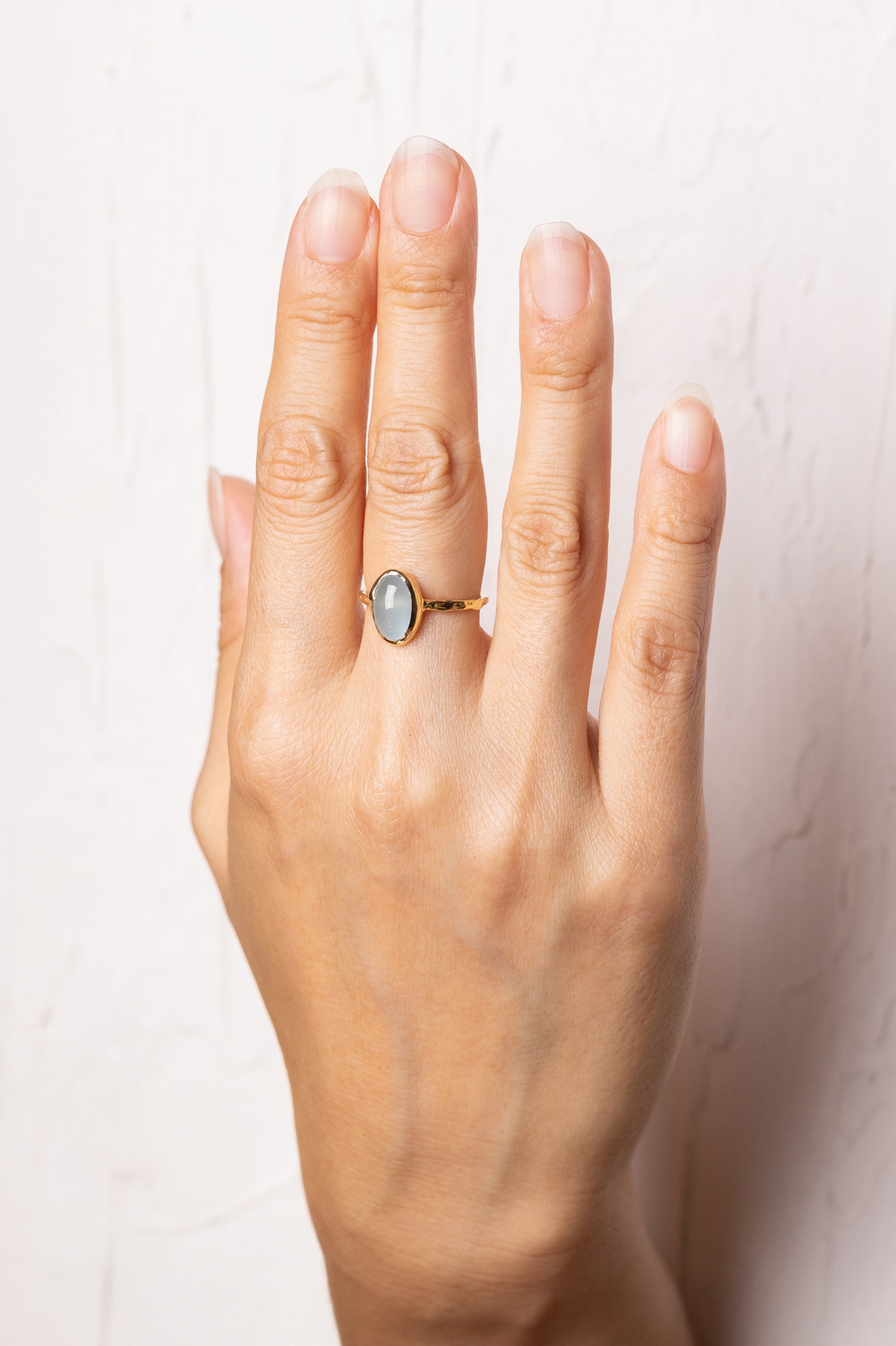 Milky Baby Blue Aquamarine Textured Band Ring