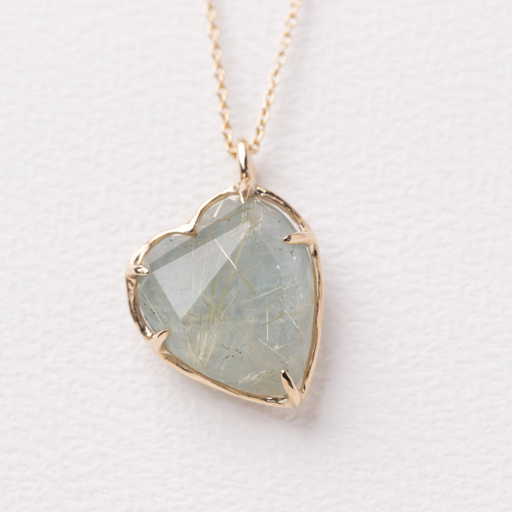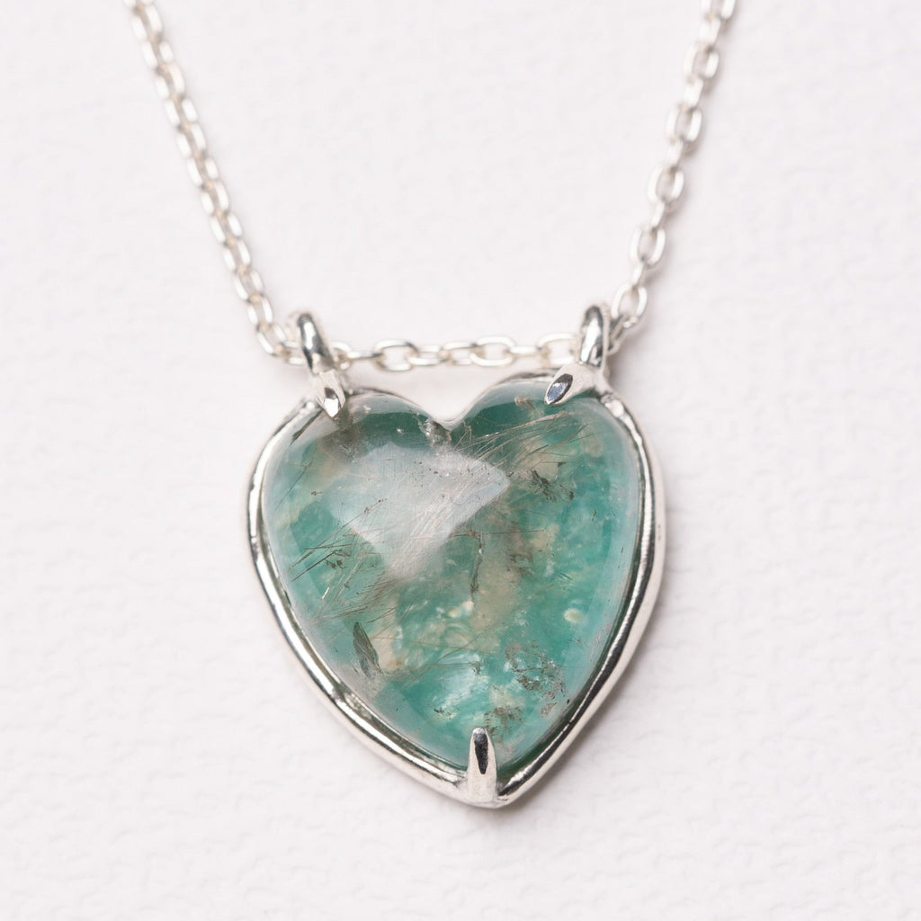 Heart Shape Doublet–Rutilated Quartz and Amazonite–Necklace