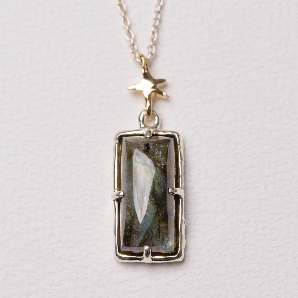 Our necklaces come with a little tag that is a shape of our logo at the end where you put the clasp on.