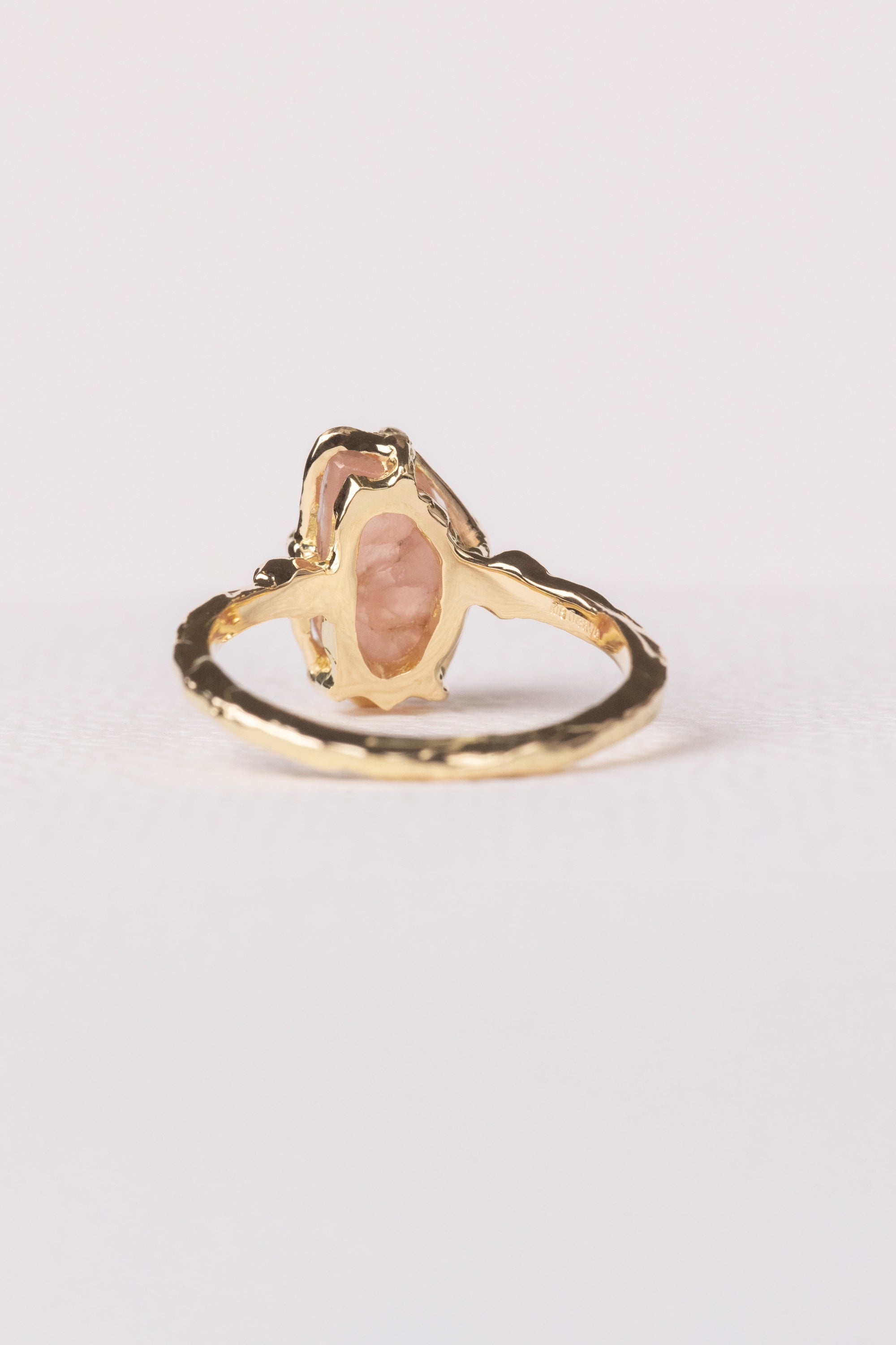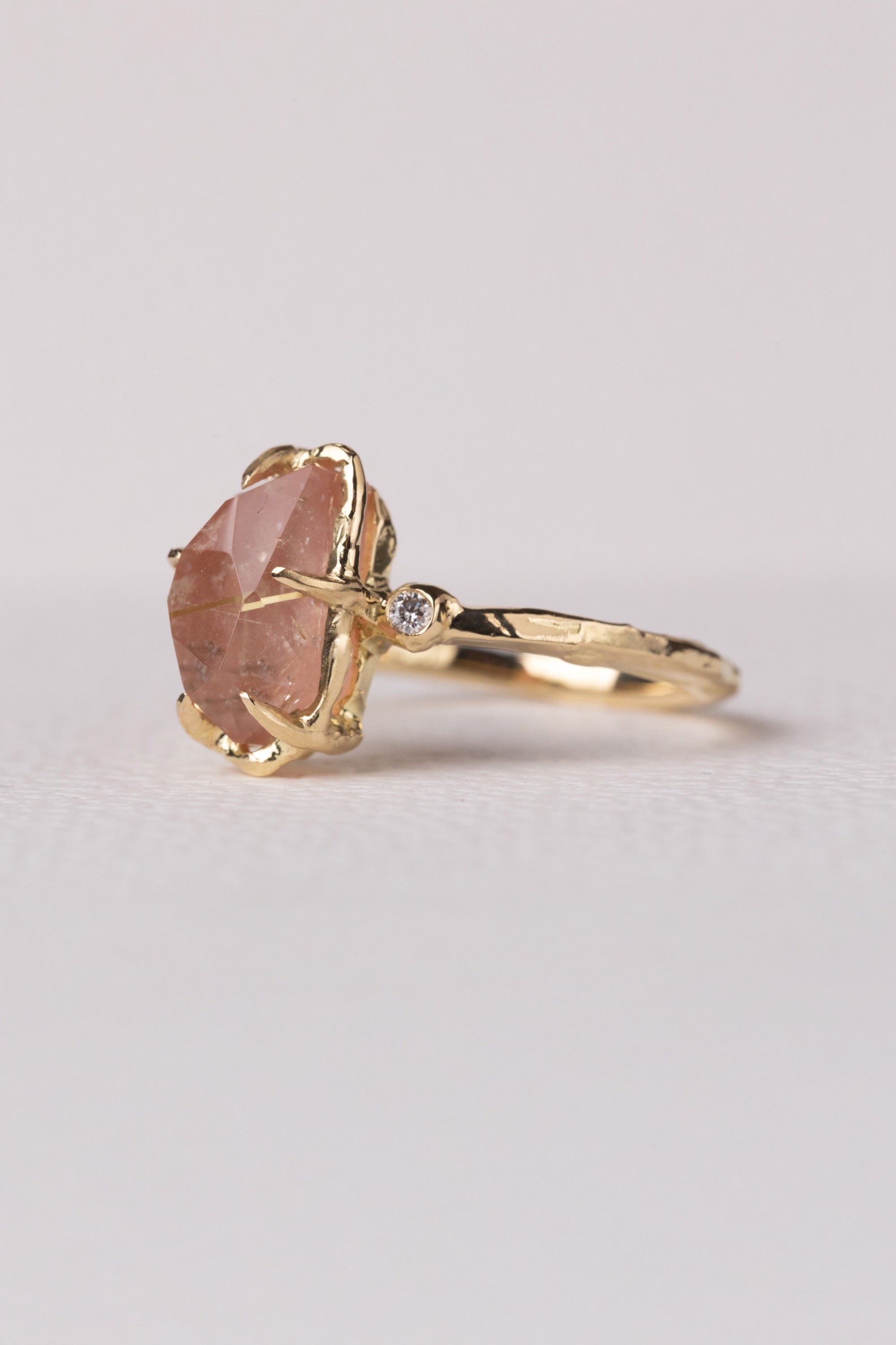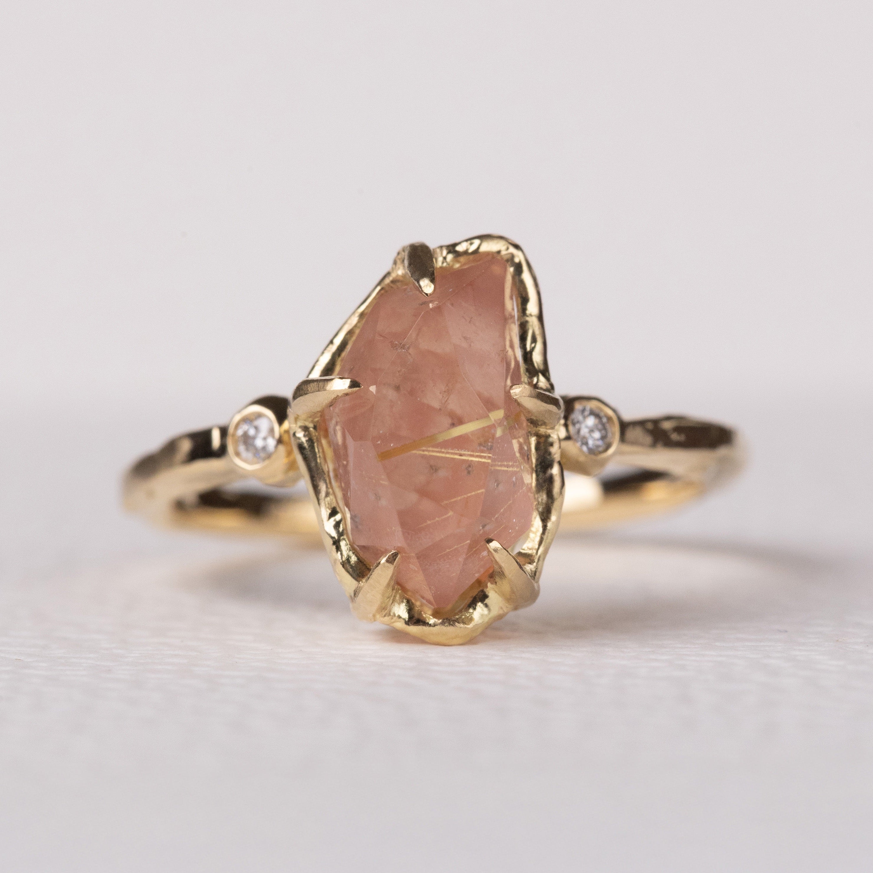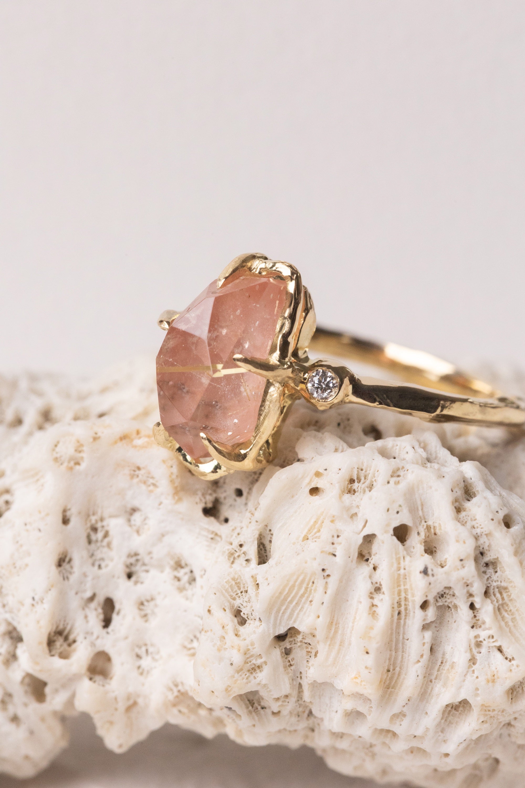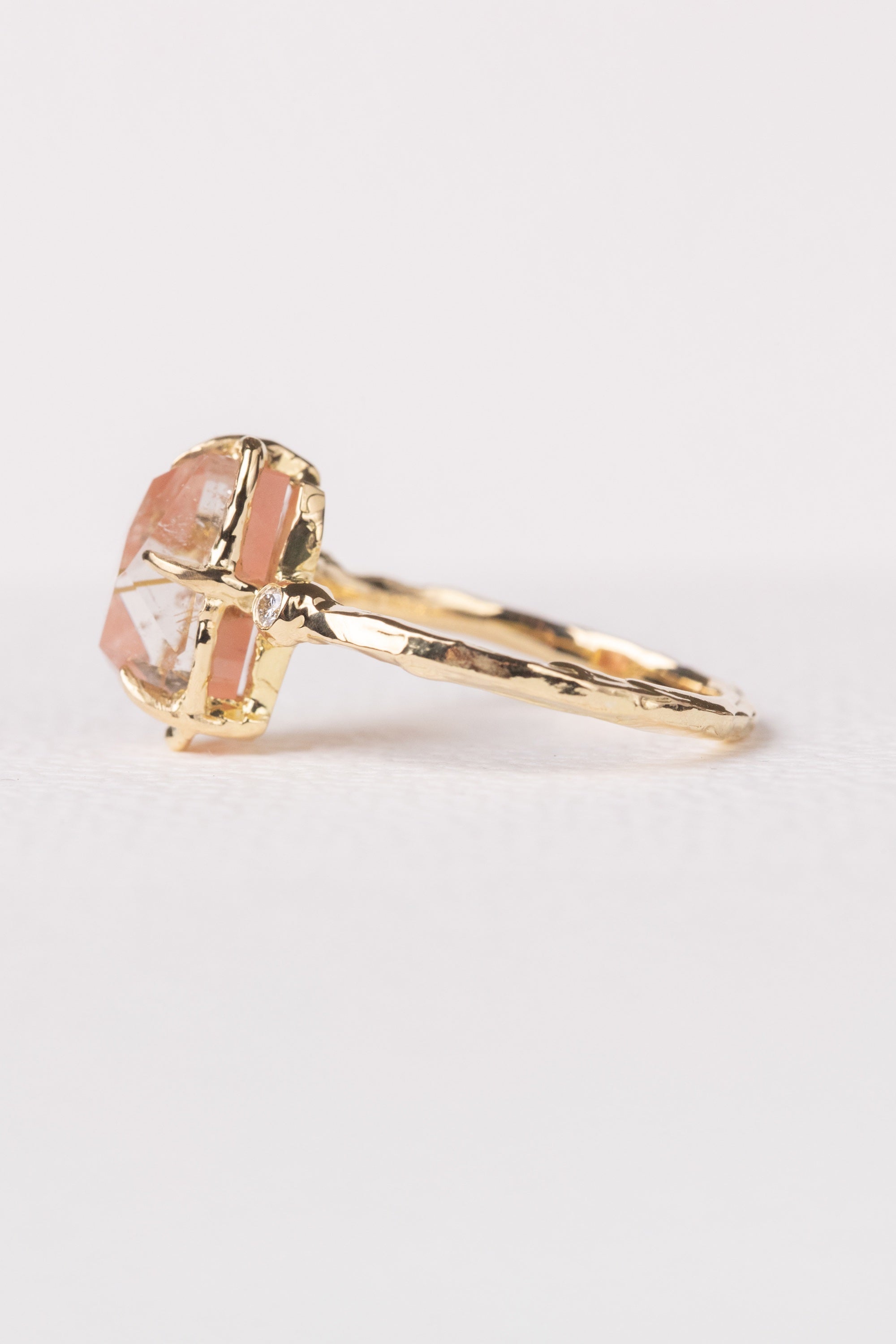 The quiet strength of Inca rose meets the ethereal clarity of rutilated quartz in this soft, shimmering doublet. It feels like memory—familiar yet layered, mellow yet glowing with something just beneath the surface.