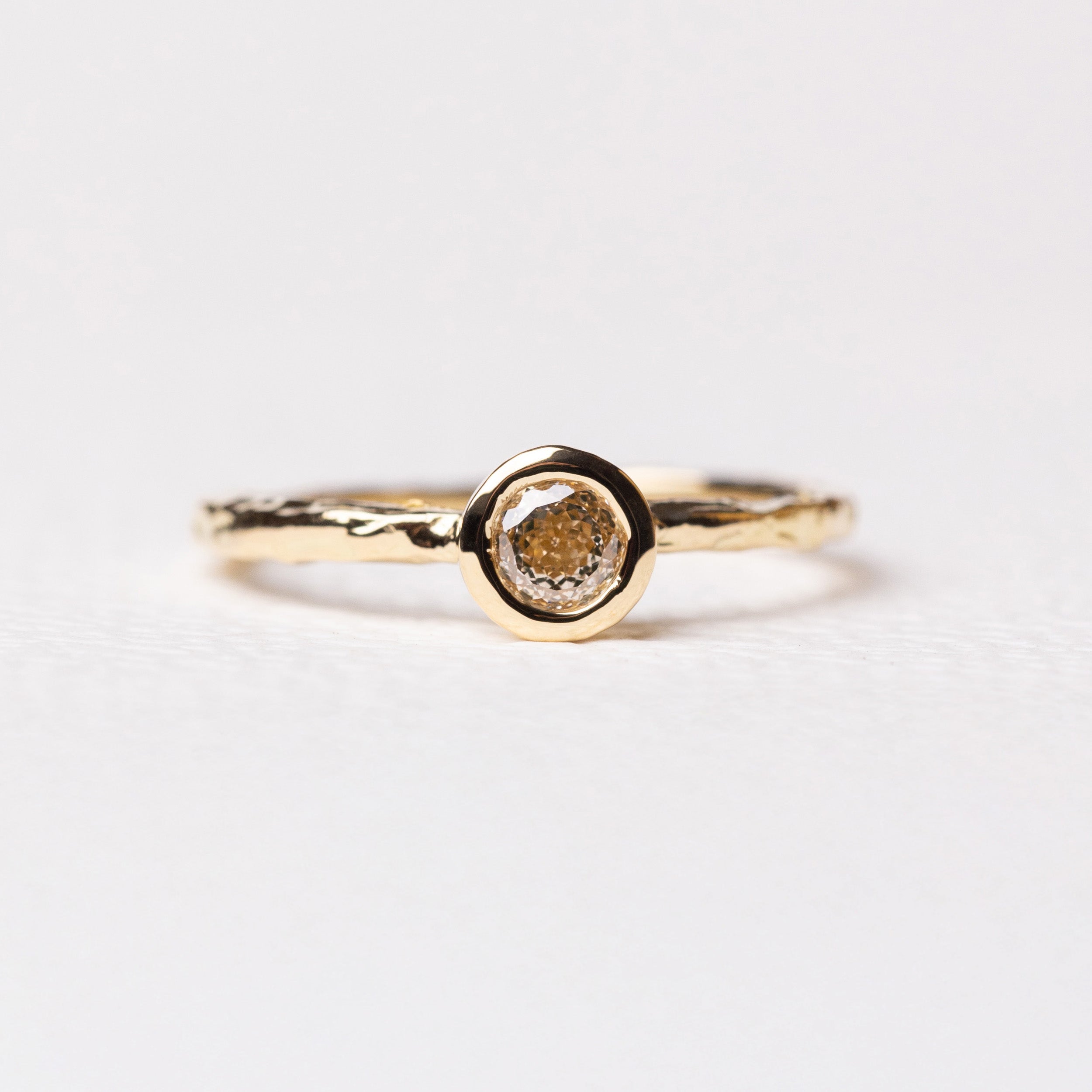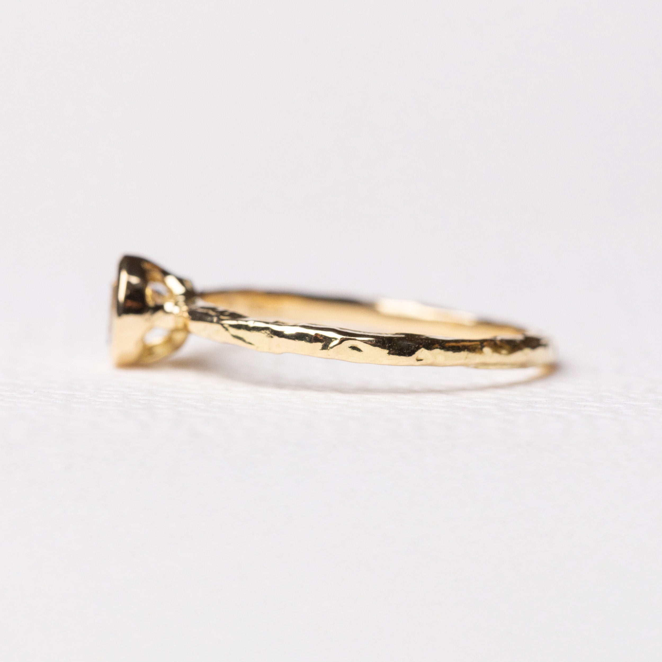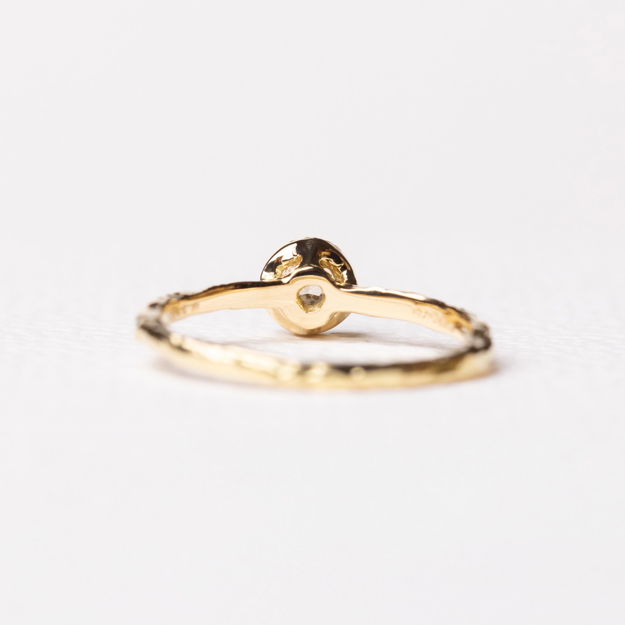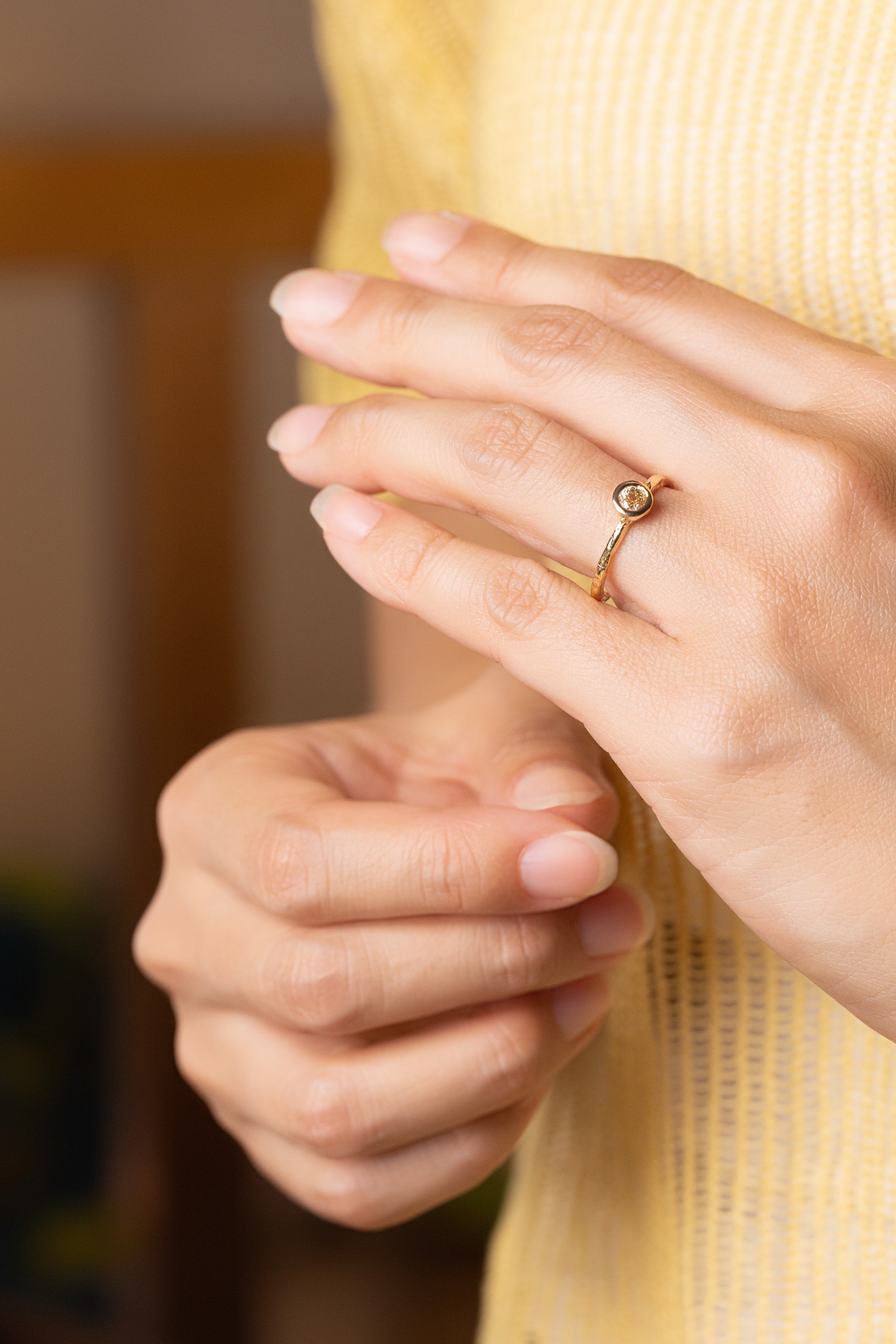Made in a clean bezel style, it feels both modern and timeless—a frame that lets the diamond speak with quiet confidence. The textured band adds a soft touch of individuality, a whisper of artistry against the smooth brilliance of the stone.