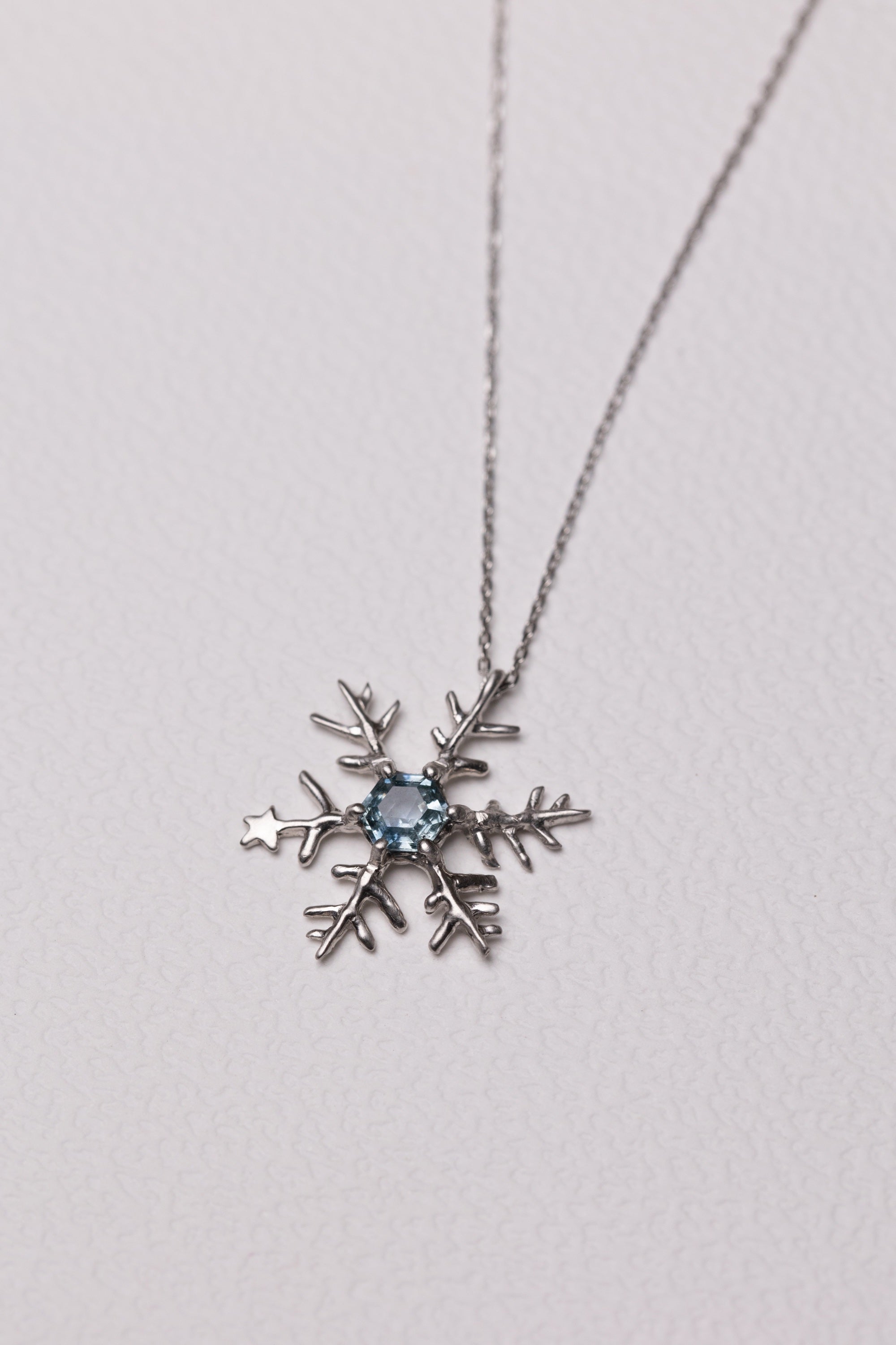 Snowflake & Blue Sapphire Necklace