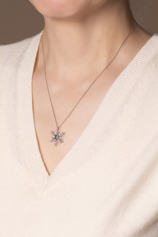 Snowflake with Blue Sapphire Necklace